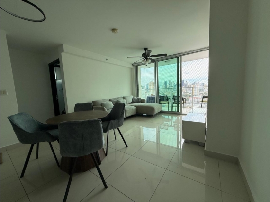 Alquiler de apartamento en PH Midpark, ubicado en calle 67A este carrasquilla, amueblado con línea blanca, juego comedor, juego de sala, aire acondicionado en sala comedor y habitaciones.