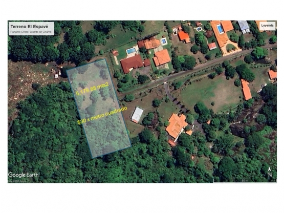 Son 5,179 m2 de terreno plano de forma rectangular, totalmente titulado. Se encuentra ubicado a solo 200 metros de la vía panamericana, a 45 minutos de la ciudad de Panamá y a 30 minutos de las playas de Chame.